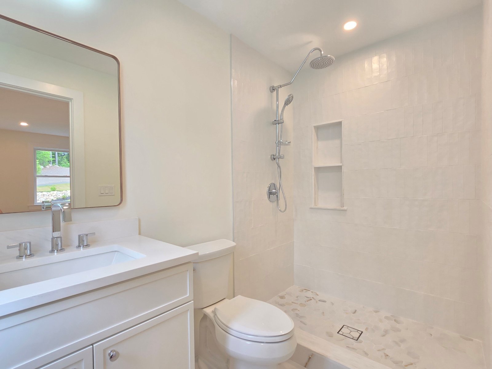 The 1st floor has 9' ceilings and a wide open floor plan with lots of natural light. Family room with electric fireplace, large dining room, separate office or reading room, mudroom, and your dream kitchen with huge center island, quartz counters, quality cabinets, vent hood, and walk-in butler's pantry with sink!